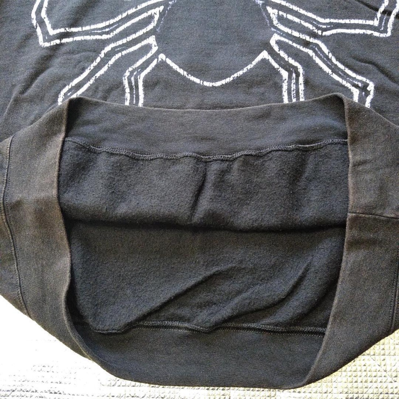 画像ではわかりにくいかもしれませんが、未使用新品ですがヴィンテージ加工がされていますので色あせた風合いになっており表面には小さい毛玉がついています。元からこのような状態ですのでお間違えの無いようにお願い致します。