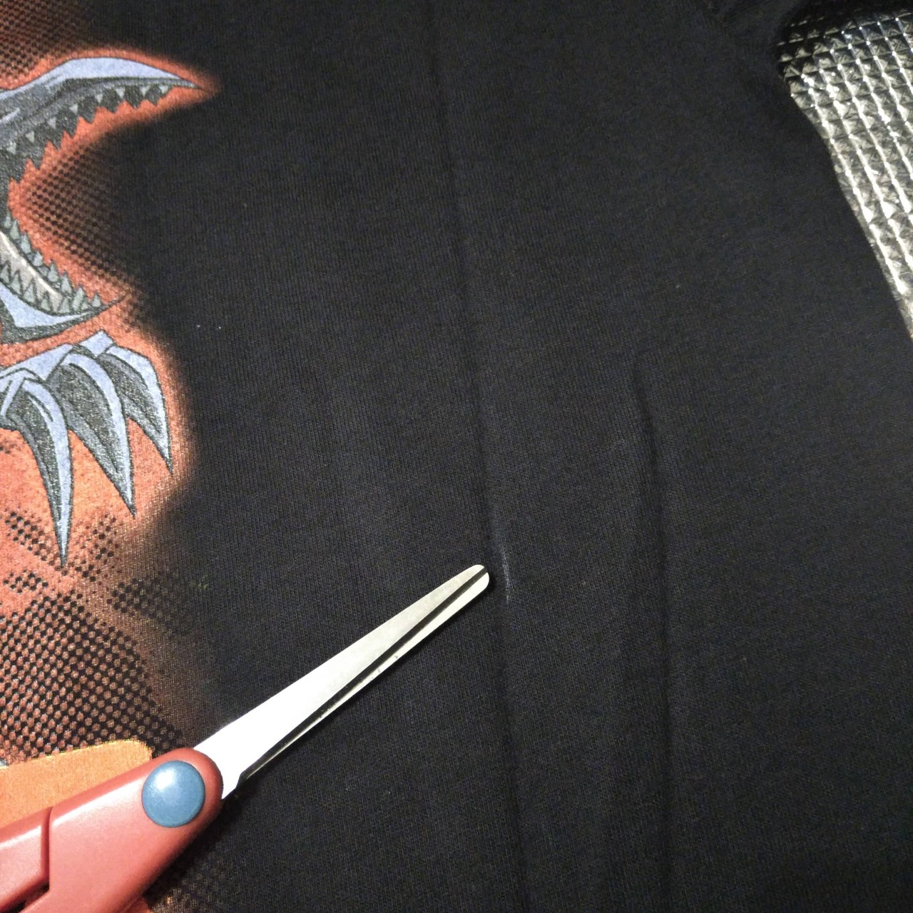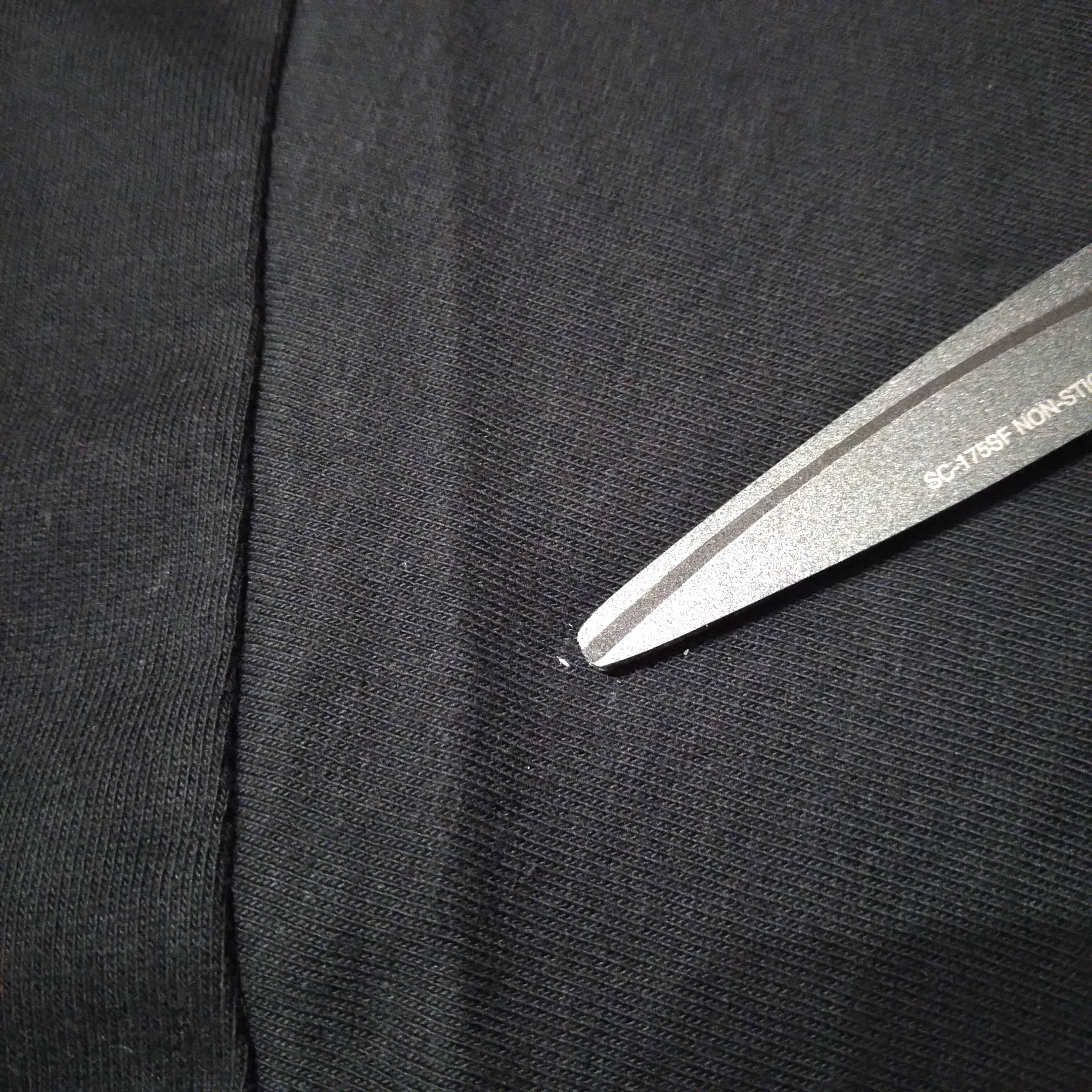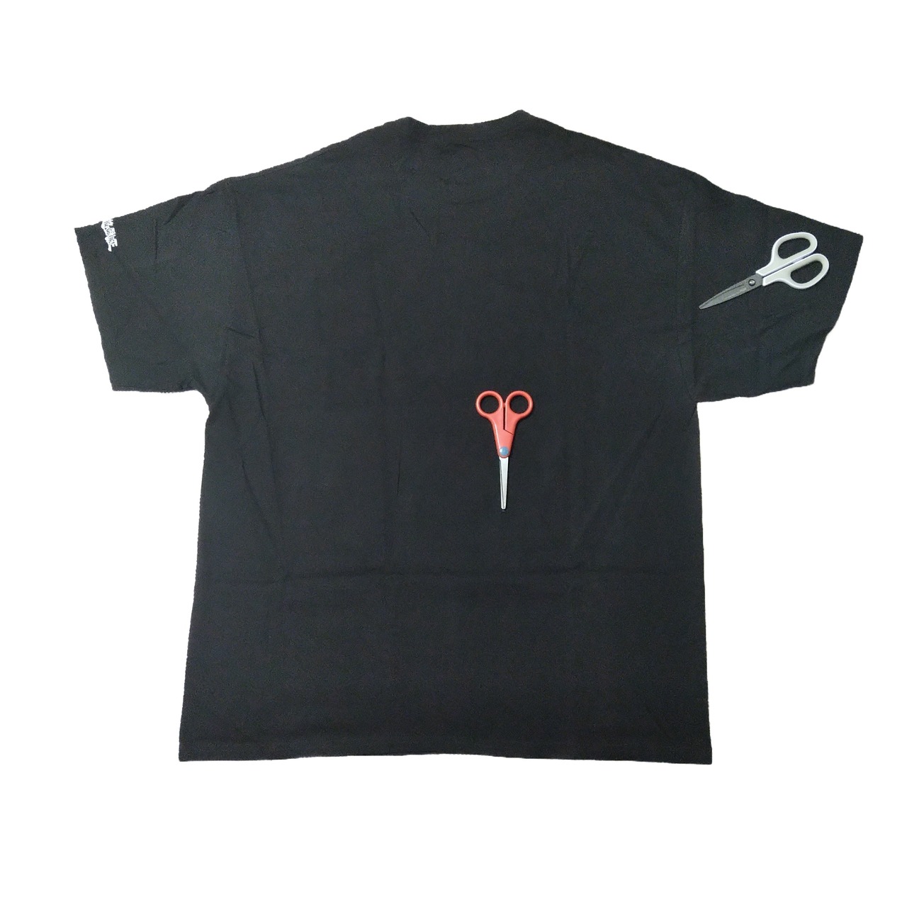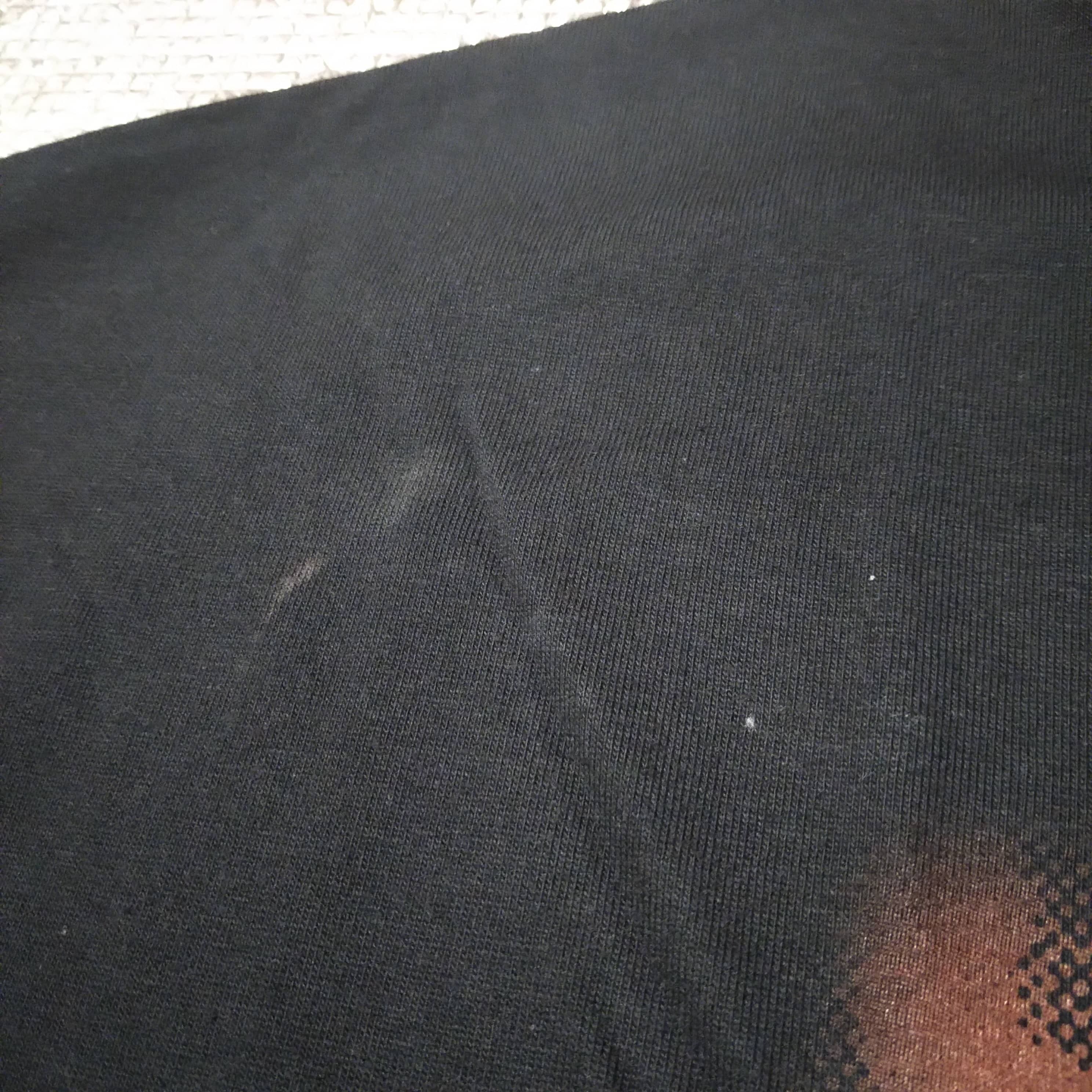 バックと右袖に白い糸が混入しています(9、10枚目画像)。海外で作られたTシャツでは、このような織り込みはたまに見られます。ご理解いただければ幸いです。
