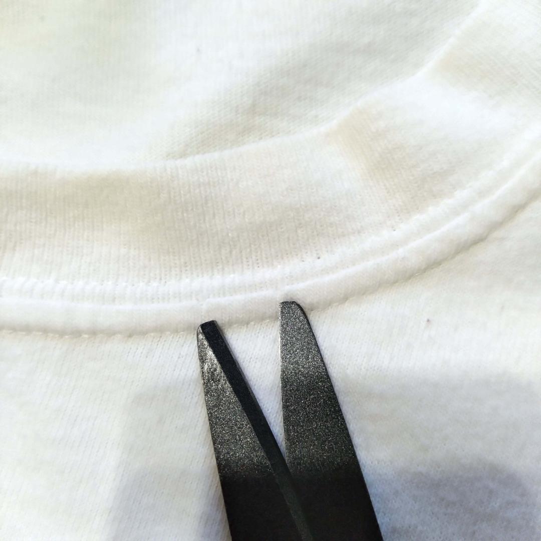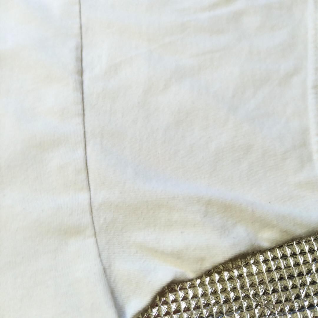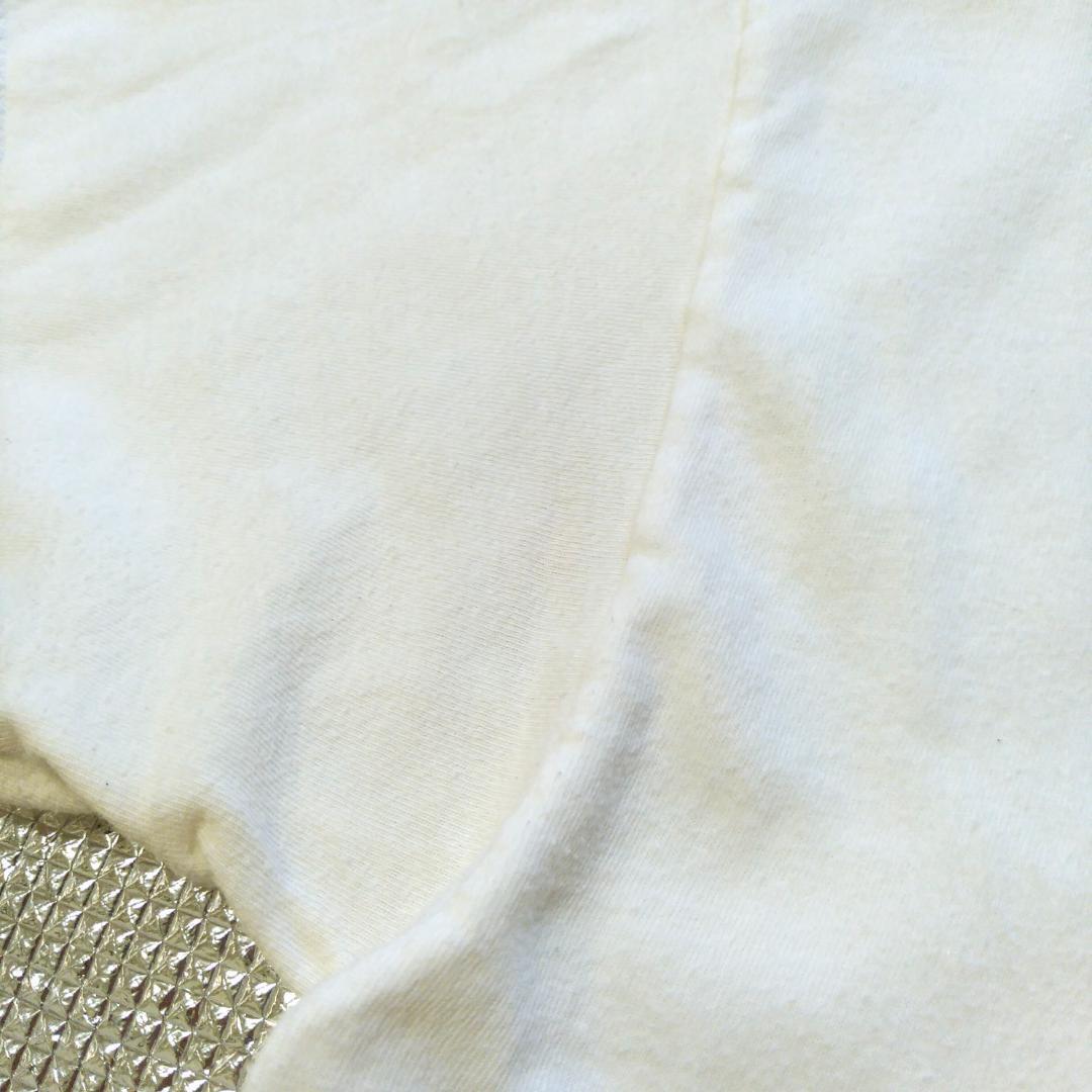 真っ白ではなくオフホワイトのような色ですが元々のTシャツの色か汚れによるものか判別できません。