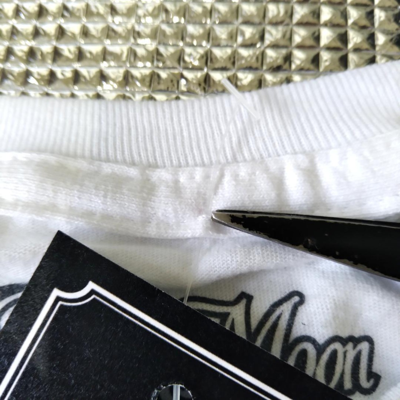 未使用新品ですが首の後ろのタグピンが刺さっている所に穴があいています(6枚目画像)。着用時は首でかくれるところですので問題ないかと思います。