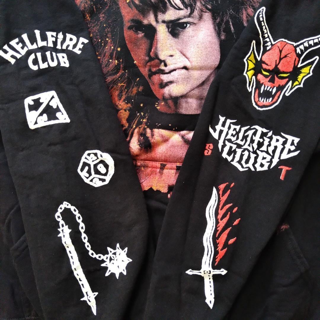 ストレンジャーシングス ヴィンテージ加工パーカー Lサイズ 黒 エディ *