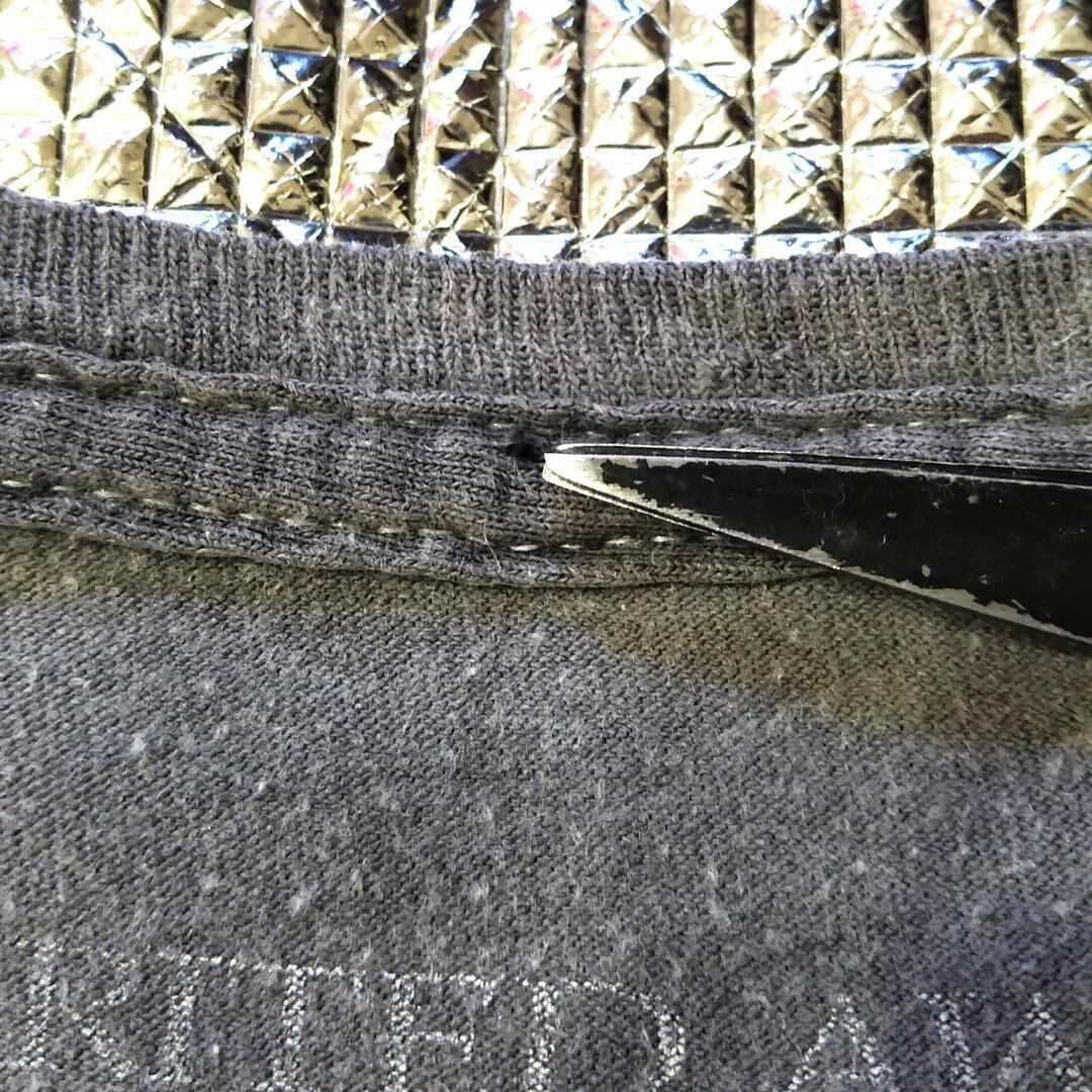 首の後ろの所にタグピンの穴があいています(6枚目画像)。生地が重なっているところで着用時には隠れるところですので問題ないかと思います。