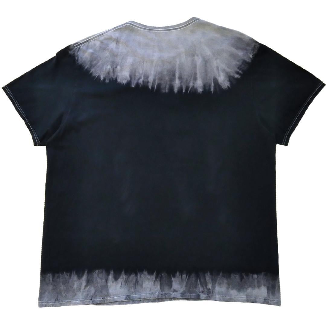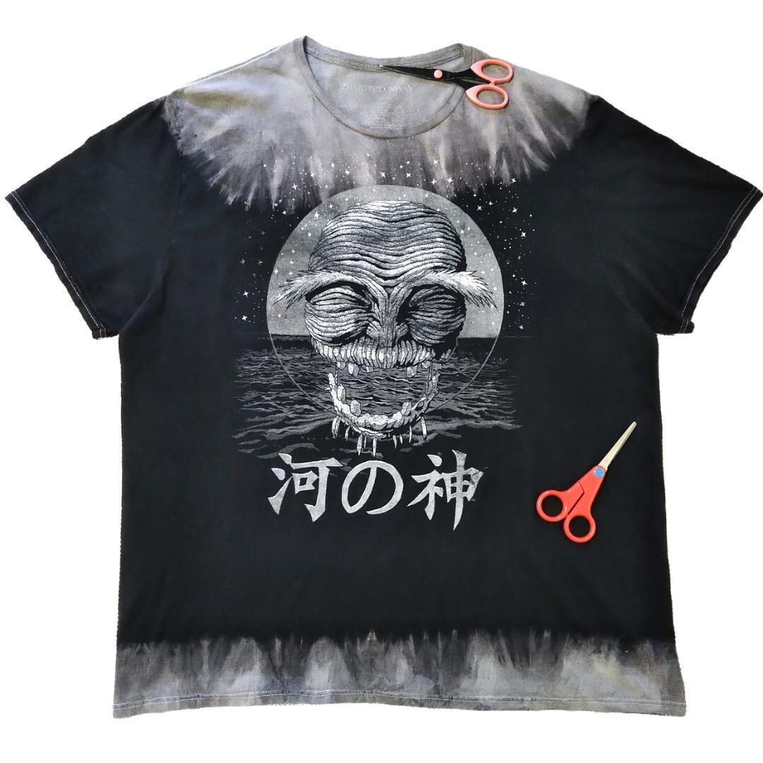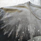 首周りと裾が色落ちしているように見えますが元々こういうデザインです。染色加工してありますので洗濯の際に色落ちする恐れがあります。洗濯の際は単独もしくは同系色と洗濯して下さい。白色、淡色のものと分けて洗ってください。