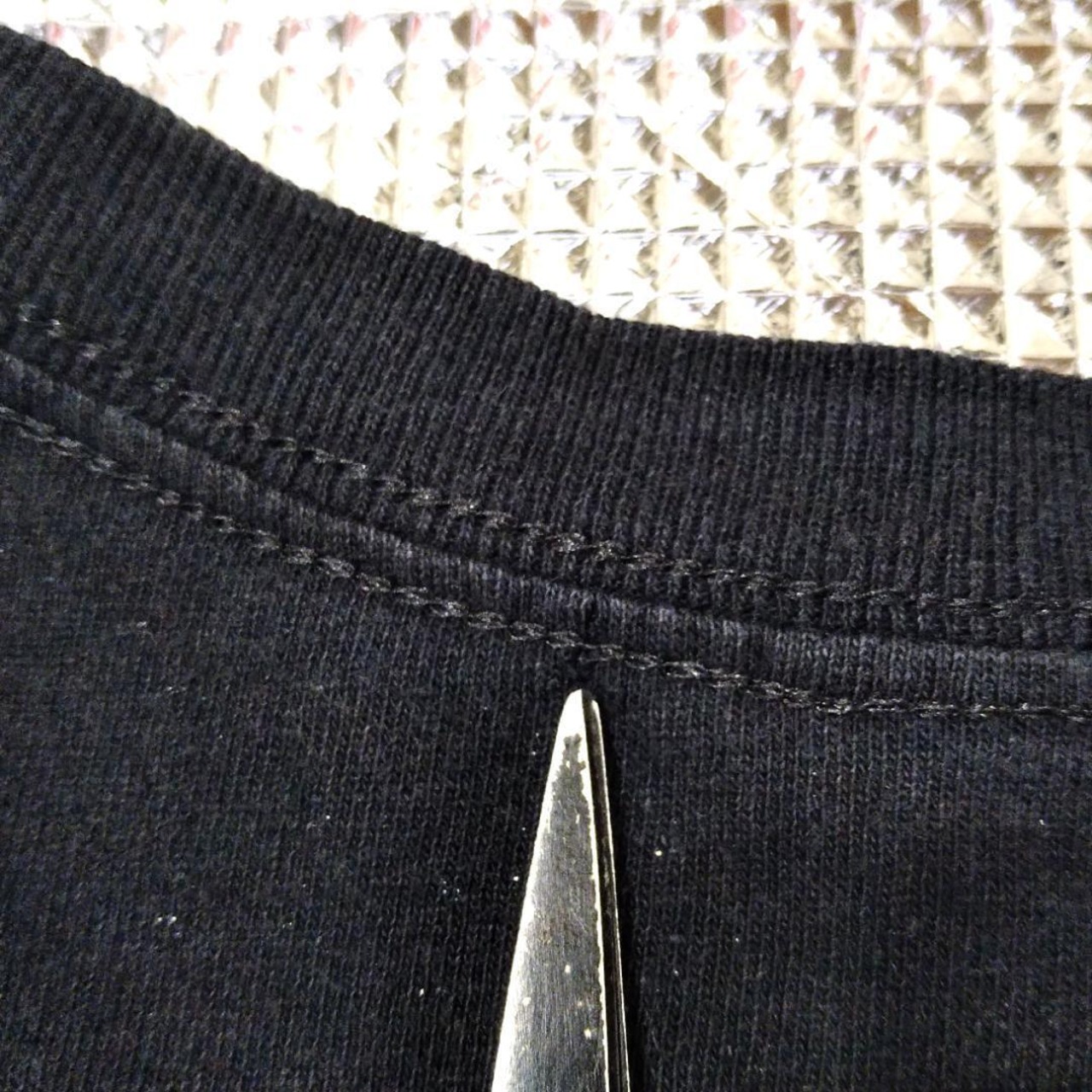 後ろ襟の付け根の付近に穴があいています(8枚目画像)
